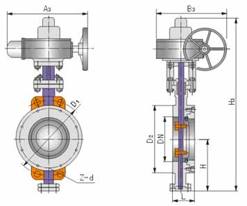 本閥采用三偏心密封結(jié)構(gòu),閥座與蝶板幾乎無磨損,具有越觀越緊的密封功能。
