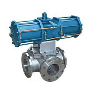 Q646F氣動四通法蘭球閥