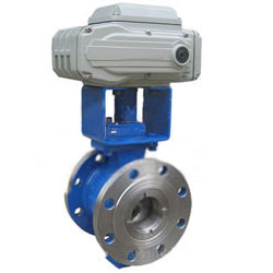 電動V型球閥V型切口球面板在增大調節比的同時,在截流時對密封環還有剪切作用,因此適用于要求大調節比的控制系統,以及對含纖維質流體、料漿類流體的控制。