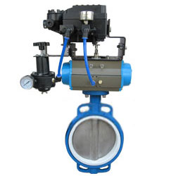 氣動調節蝶閥采用電-氣閥門定位器,以電信信號和壓縮空氣為動力,接受控制系統輸入4-20MA或1-5V電流信號,由調節器將壓縮空氣轉?成氣源壓力輸入輸出,改變閥板的旋轉角度(0-90度任意角),具有較好的調節控制流量參數。
